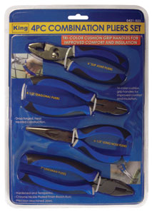 6" Slip joint, 6.5" Diagonal, 6.5" Long nose, 7" Linesman pliers.
