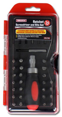 34PC RATCHETING SCREWDRIVER & BIT SET
